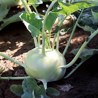定植後53日前後で収穫できる緑色種と定植後60日前後で収穫できる紫色種のミックス。 断面色はどちらも白色。肥大茎の直径が8?10cm程になったら収穫サイズ。