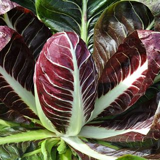 イタリアはトレビーゾエリアの伝統野菜で20cm程の長さのラグビー型の赤チコリで、赤と白のコントラストが綺麗な葉野菜です。