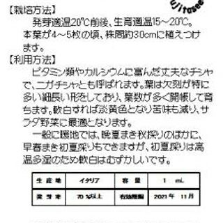 他の画像を見る 葉菜 種 【 エンダイブ グリーンカールド2 】 小袋 ( 葉菜の種 ) 当店特別価格 ¥ 341 税込 ビタミン類やカルシウムに富んだ丈夫なチシャ カートに入れる お気に入りに登録する