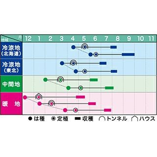 暖地 3月下旬 (ハウス)12月上旬、(トンネル)1月中旬
