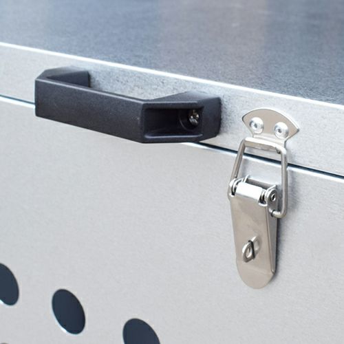 ガルバリウム鋼板で錆びにくく、耐久性に優れています。閉じた後は、鳥犬猫の侵入によるゴミの散乱を防ぎます。ゴミの出し入れの際、手・指を蓋に挟むケガを防ぐストッパー付きです。前/後/側面は通気性の良いパンチング仕様でニオイがこもりません。組み立て簡単 組み立て所要時間約20分