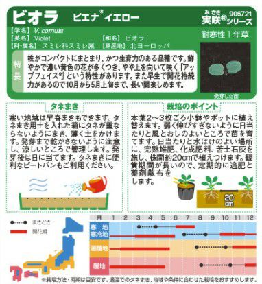 他の画像を見る ビオラ 種 【 ビビ イエローブロッチ 】 1000粒 ( ビオラの種 ) 当店特別価格 ¥ 3,762 税込 在庫切れ 花色の豊富さと、冬も咲く抜群の連続開花性! 再入荷お知らせ お気に入りに登録する