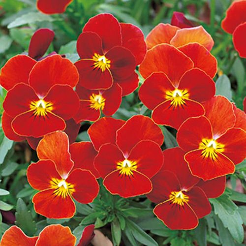 連続開花性あり。株姿がバランスよくコンパクトにまとまり、鉢植えや寄せ植えに好適。花径3.5~4cm。ももか(百花)の名前の通り花つきのよさが抜群で、定植後こんもりと形がよく株が生育する。