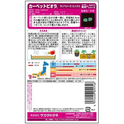 他の画像を見る ビオラ 種 【 カーペットビオラ サンベリーナミックス 】 実咲小袋 ( ビオラの種 ) 当店特別価格 ¥ 385 税込 在庫切れ カーペットのように広がりあふれるように咲く! 再入荷お知らせ お気に入りに登録する