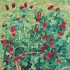 クローバーの仲間で耐寒性はとても強く、株張り約30cm草丈約40cmになります。八重桜が散り始めるころ、真っ赤なイチゴの果実に似た花穂を数多く枝先につけます。かわいらしい切り花にもなります。