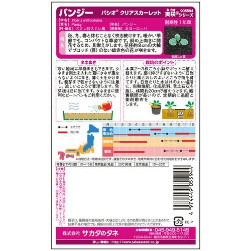 他の画像を見る パンジー 種 【 パシオ クリアスカーレット 】 実咲小袋 ( パンジーの種 ) 当店特別価格 ¥ 385 税込 情熱と技術の結晶!自信をもっておすすめする傑作パンジー カートに入れる お気に入りに登録する