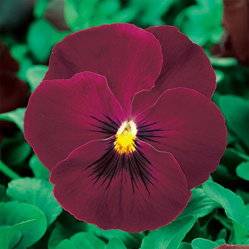高温長日下でもコンパクトな草姿の大輪系パンジー。斜め上向きに開花します。