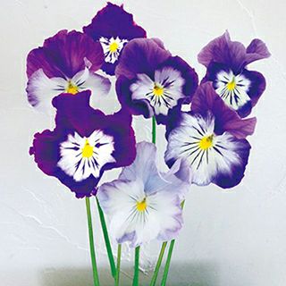 茎・花首が太くしっかりしているため切り花に向く中大輪パンジー。色幅広く楽しめる。花径6~7cm。