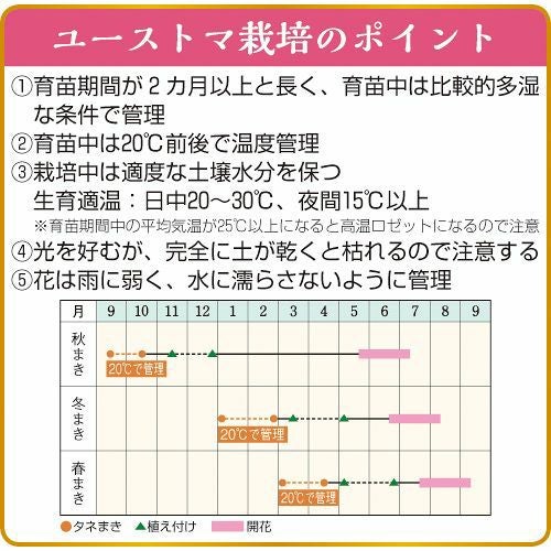 他の画像を見る ユーストマ 種 【 F1ミンク キャンディ 】 小袋 ( ユーストマの種 ) 当店特別価格 ¥ 330 税込 在庫切れ バラのような美しい花形で花もちがよいのが特徴 再入荷お知らせ お気に入りに登録する