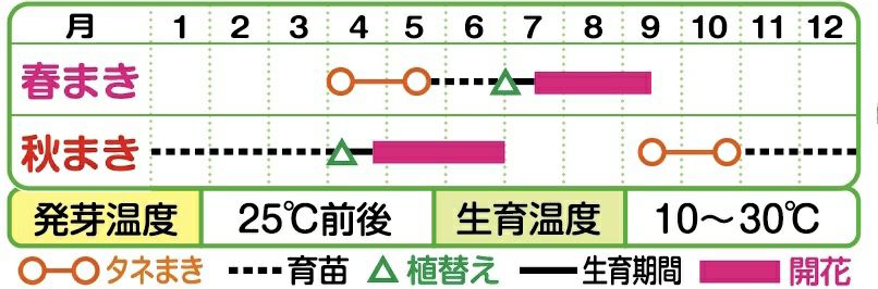 中間地 (春まき)3月中旬~5月中旬、(秋まき)9月中旬~10月下旬