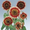 芯黒で茶褐色の花で、花弁の先が黄色になる二色咲きのひまわり。密植して花を小さく作る(花径10~12cm)と切り花用に、株間を広く植えて大きく咲かせると花壇用になる。Q