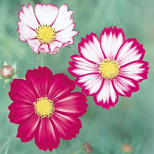 赤からピンク地に白の絞りや覆輪がさまざまに入ります。上部で分枝し、草丈がやや低く、切り花だけでなく花壇やプランターにも向きます。