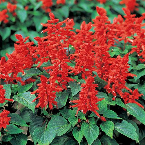 草姿のバランスがよく、やや遅咲きで暑さに強い作りやすい品種です。花穂が大きく、花色は鮮やかな緋赤で花壇や鉢植えに向いています。