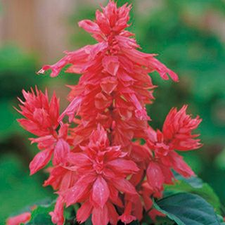 サルビアの一般的なタイプ。花期が長くて、緋赤色以外にも多彩な色を楽しめる。すくすく育ち、秋まで開花。タネから育てられる人気の草花。早咲きタイプで、株元から枝分かれし、株張りがしっかりしている。ボリューム感ある花穂が長期間咲く。草姿が乱れにくく、光沢ある濃い緑色の葉で、とても育てやすい。