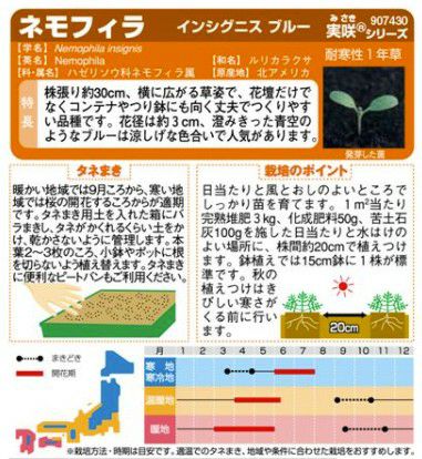 他の画像を見る ネモフィラ 種 【 インシグニスブルー 景観用大袋】 実咲小袋 ( ネモフィラの種 )(景観用) 当店特別価格 ¥ 385 税込 とても丈夫で育てやすいのも魅力 カートに入れる お気に入りに登録する