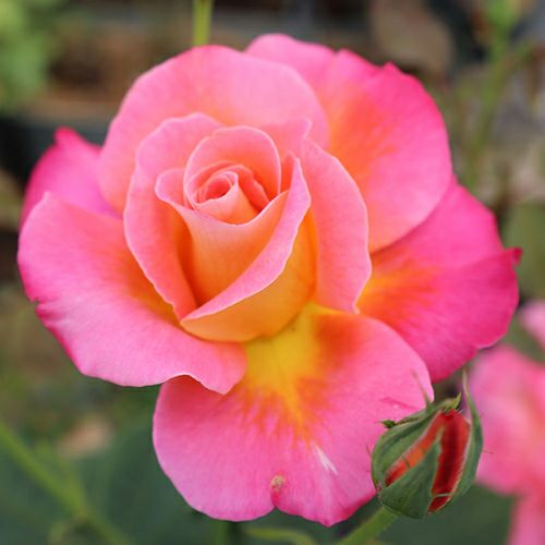 品種名:グラナダ Granada系統:ハイブリッドティーローズ 樹高:1.3~1.5m形状:直立性棘:少ない花期:四季咲き花色:黄・赤の覆色花弁数:34~40花径:12~14cm咲き方:半剣弁高芯咲き香り:強香鉢/地植え:地植えブランド:Ludwig's Roses 作出国:アメリカ作出年:1964作出者:Robert V. Lindquist
