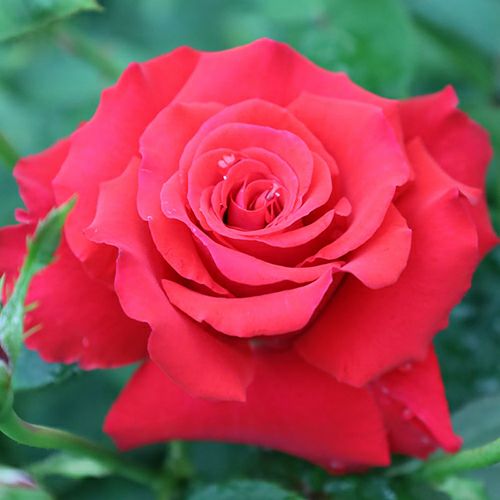 品種名:レッドピース Red Peace系統:ハイブリッドティーローズ 樹高:1.5~1.8m形状:直立性棘:多い花期:四季咲き花色:赤花弁数:約60花径:14~16cm咲き方:剣弁高芯咲き香り:強香作出国:ドイツ作出年:1950作出者:Kordes