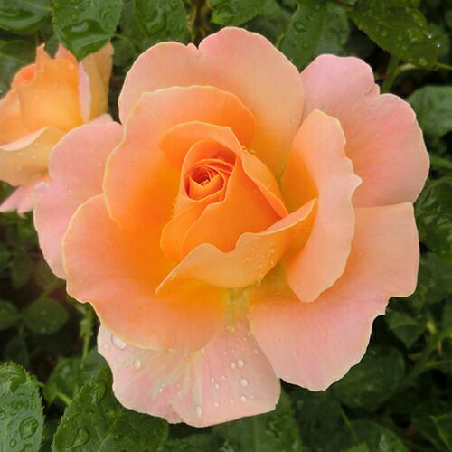 ピンクを帯びたアプリコット色で、フルーティーな香りがこの品種の魅力。切り花としても楽しめる。比較的コンパクトにできるので、鉢植えにも向く。