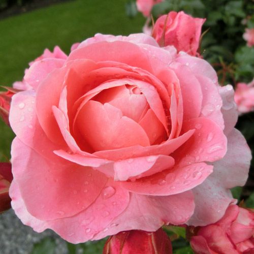 輝くようなサーモンピンクで黒点病やうどんこ病に対してほぼ完全な抵抗力を持つ強健種。生育旺盛で日陰にも強く、花保ちも良いため人気がある。