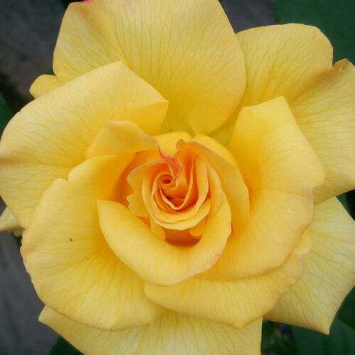 濃い黄で剣弁高芯咲きの大輪。咲くに従いレモンイエローに色が変化をする。