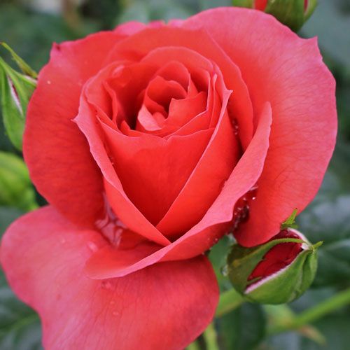 ビロードを帯びた神秘的なレンガ色で、光沢のある葉がより一層花を引き立てる。耐病性にも優れ栽培しやすい。