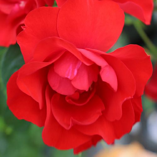 濃い光沢のある赤色が魅力。房咲き状で、半つる性のように伸びることがある。光沢葉で色が濃く健康的である。