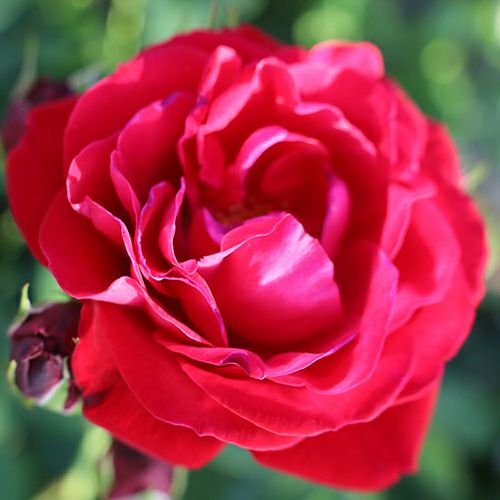 鮮やかなビロード赤で、房咲き性が強い。深い緑の葉と花との調和が素晴らしい。