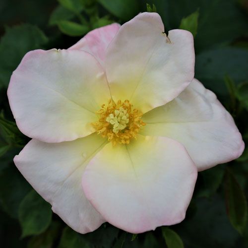 四季咲き性の輝く桜色ピンクの一重咲きで、弁底は黄。花付きは多花性の中輪咲き。強健種。枝は横張りで、鉢物仕立てに向く。