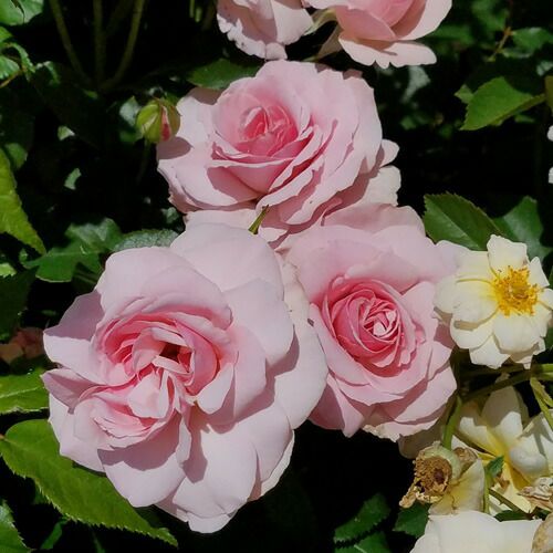 優しい淡いピンクで、ほのかな香りがある。樹形もやや大きいスプレー咲きの多花性。とてもエレガントな品種。