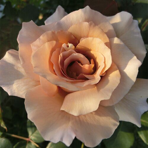 大輪ジュリアの枝変わりで、花枝は垂直に優しく伸びる。優雅でシックな花色。
