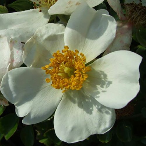 さわやかな白で花芯の黄色が目に付く。小ぶりな花ながら華やかさがある。
