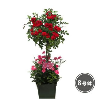 スタンダードローズの根元にミニバラを植え込んだプレミアムなスタンダードローズです。※花と蕾が混在した状態でのお届け予定ですが、お届け時期により花の状態は変わります。※鉢の色・形は、変更になる場合がございます