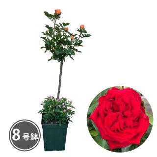可愛らしさと豪華さを兼ね備えた見た目が魅力のスタンダード仕立てが、お庭や玄関先を優雅に演出します。下段にはミニバラ(ピンク)を植え込み、さらに豪華さが増したプレミアムな仕立てです。※お届け時見本はイメージです。※花と蕾が混在した状態でのお届け予定ですが、お届け時期により花の状態は変わります。※鉢の色・形は、変更になる場合がございます。※母の日カードとラッピングが無料でつきます。